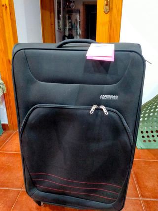 Maleta grande de la marca American Tourister en color negro. Cuenta con un diseño espacioso y práctico para tus viajes. - Material resistente. - Ruedas para facilitar el transporte. - Asa extensible. - Bolsillo frontal con cremallera.