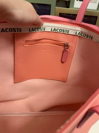 Bolso tote de la marca Lacoste en color rosa. - Diseño espacioso. - Asas de mano y hombro. - Logo de cocodrilo visible.