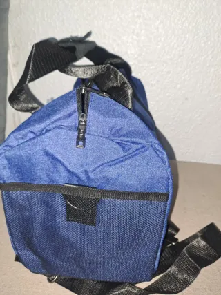Práctica bolsa de la marca Joybo. - Color azul con detalles en negro. - Asa de mano y correa ajustable.