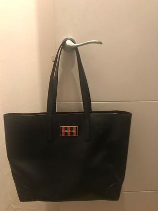Bolso de mano y bandolera de la marca Tommy Hilfiger. - Diseño con monograma TH en blanco y gris. - Asa corta superior y correa bandolera ajustable. - Cierre de solapa con logo metálico de la marca.