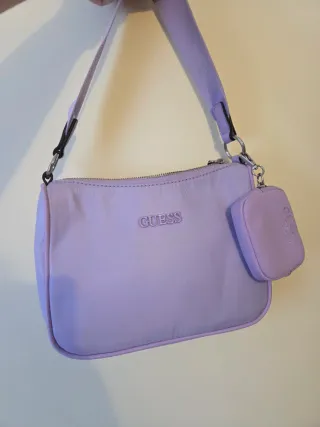 Bolso de hombro de la marca Guess en color morado. - Diseño moderno y versátil. - Correa ajustable para mayor comodidad. - Logo de la marca en relieve en el frontal. Precio negociable!