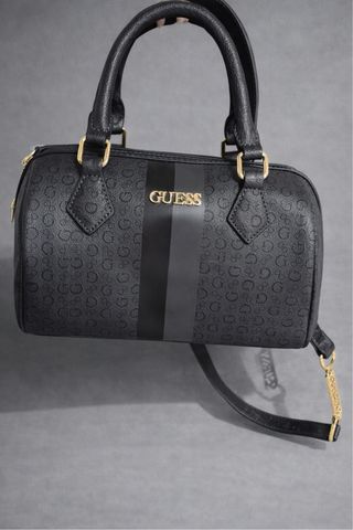 Bolso de mano con un diseño estampado característico de la marca. - Cierre de cremallera. - Placa metálica dorada con el logo de Guess.