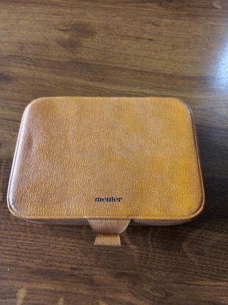 Estuche de la marca Menter en tonos beige y marrón. - Diseño elegante y funcional. - Cierre seguro.