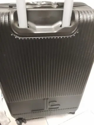 Maleta de bodega ideal para viajes de hasta 23 kg. Diseñada con un acabado texturizado y detalles metálicos en las esquinas. - Asa extensible para facilitar el transporte. - Ruedas para un desplazamiento suave. - Nombre de la marca grabado en relieve en la parte frontal. Nunca usada .. sigue con su plástico. Posibilidad de entrega en Irún.