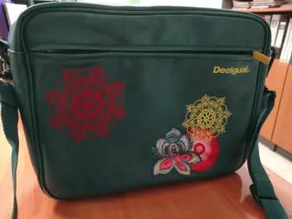 Bolso bandolera de la marca Desigual con un diseño llamativo. - Color principal verde. - Adornado con bordados de mandalas y flores. - Cierre de cremallera.