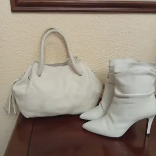 Bolso de piel con un diseño moderno y elegante.de piel beige blanco roto . Esquinas base y asas en muy buen estado, con llavero de piel grabado con la marca , interior forrado con la marca y bolsillo con cremallera grabada con la marca , es bonito ligero y muy combinable . Mide 28 cm ancho . 25 alto . 19 fondo . - Color beige con detalles en relieve. - Cierre de cremallera. - Asas cómodas para llevar en la mano o en el antebrazo.