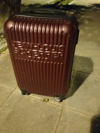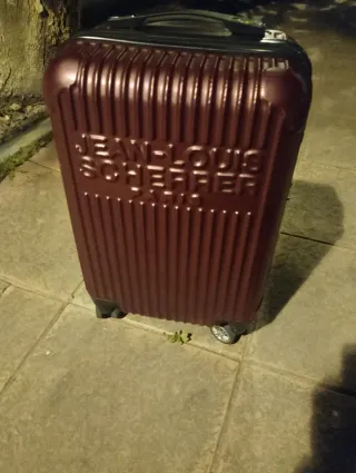 Maleta de viaje de la marca Jean-Louis Scherrer. - Color rojo. - Diseño acanalado. - Ruedas para facilitar el transporte.