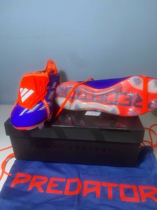 Botas de fútbol de gama alta de la marca Adidas.(predator) - Diseño en azul y naranja. - Incluye bolsa de tela para guardarlas.