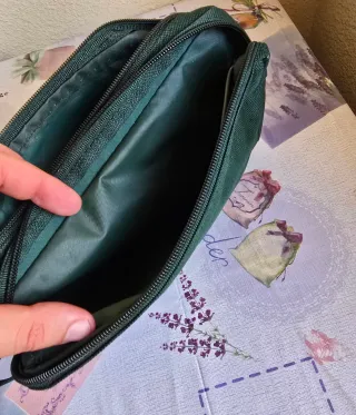Neceser de la marca Springfield. - Color verde. - Cierre de cremallera y asa lateral para transporte. Mide 25 cm de largo, 10 cm de ancho y 16 cm de alto. Nuevo, a estrenar.