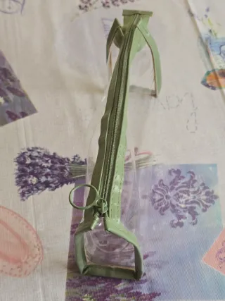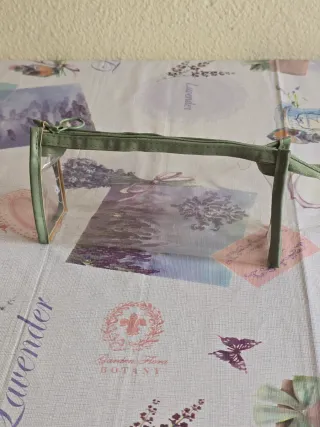 Práctico estuche/necesser transparente con detalles en verde. Ideal para organizar tus pertenencias. - Material: PVC transparente y polipiel. - Cierre de cremallera. Medidas: 21 cm (largo) x 6 cm (fondo). Nuevo, sin estrenar.