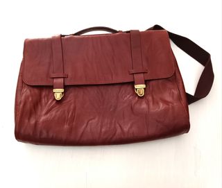 Maletín cuero marron para llevar documentos o el portátil, de la marca PETUSO. Con 2 compartimentos, 1 bolsillo interior y bandolera ajustable. Nuevo, nunca se ha usado.