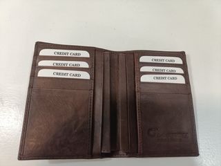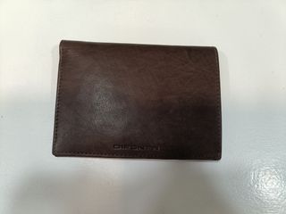 Cartera de cuero auténtico de la prestigiosa marca Difontti. Color Marrón. Con compartimentos para tarjetas y billetes. Sin estrenar. Medidas: 12x5 cm ¡¡¡ATENCIÓN!!! Como se ve en la última foto, tiene incisión de publicidad Disponible para envío o para entrega en mano en San Juan Pueblo (Alicante).