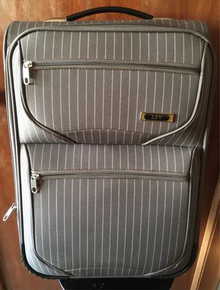 Vendo maleta de viaje de la marca LIV. Es pequeña y perfecta para escapadas cortas. Se encuentra en buen estado. - Diseño elegante a rayas. - Asa de mano superior. - Cuatro ruedas giratorias. - Compartimento principal con cierre de cremallera. - Bolsillos exteriores con cremallera.