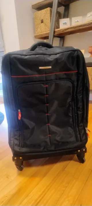 Maleta flexible, grande, de la marca Decent en color negro. Medidas 75x45x28 cm. Se ha utilizado en 3 o 4 ocasiones, se vende por no usarse. Está en perfecto estado. - Compartimento principal espacioso. - Bolsillo frontal con cremallera. - Asas de transporte superior y lateral. - Cuatro ruedas para facilitar el desplazamiento.
