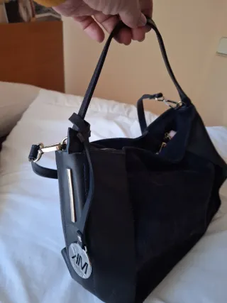 Bolso de hombro y bandolera de la marca Martina K - Combinación de ante y piel. - Color azul marino.