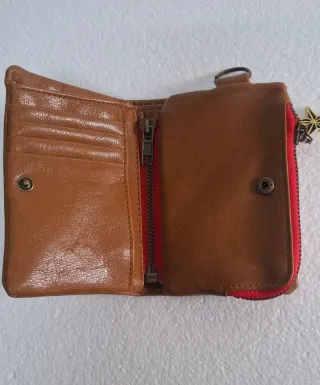 Cartera de la marca Billabong con un diseño moderno y práctico. - Color marrón exterior. - Detalle de cremallera roja. - Incluye charm de estrella. - Etiqueta original adjunta.