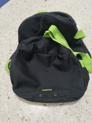 Práctica bolsa de deporte de la marca Kipsta. - Color negro con detalles en verde. - Diseño moderno y funcional.