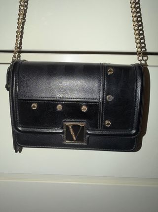 Elegante bolso de la marca Roberto Verino. - Diseño en color negro. - Detalle de logo en la correa. - Placa metálica frontal. Apenas ha tenido uso. Pero le faltan dos tornillitos en la placa frontal tal como se aprecia en las fotos. Por lo demás está impecable.