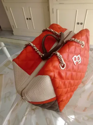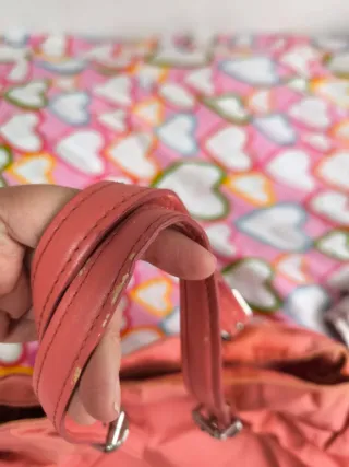 Bolso de piel suave con un bonito tono Camel rosado. Su diseño es elegante y versátil. - Material: Piel. - Color: Camel rosado. - Cierre con hebilla dorada. A pesar de no ser de ninguna marca conocida, es uno de mis bolsos más preciados, por su suave piel y su comodidad, .....pero ya uso bolsos más pequeños. 45x 25