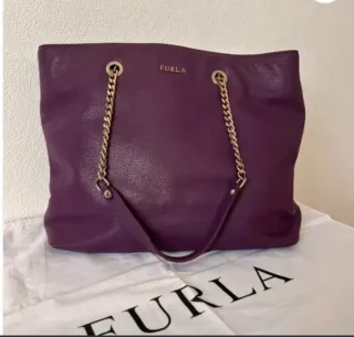 Bolso tote de piel en un llamativo color berenjena. Un accesorio elegante y espacioso. - Diseño con cadena dorada. - Asa de piel. - Logo de la marca en la parte frontal.