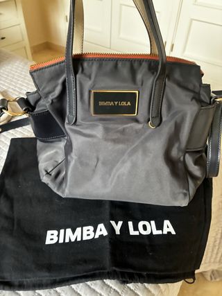 Bolso de la marca Bimba y Lola en tonos gris y azul oscuro. - Compartimento principal con cierre de cremallera. - Bolsillos interiores - Incluye bolsa guardapolvo con el logo de la marca. - Original. - Asa corta y larga