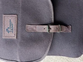 Bolso de lona con detalles en piel. - Correa ajustable. - Cierre con hebilla. - Etiqueta de la marca.
