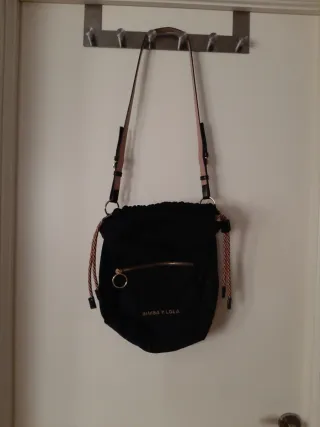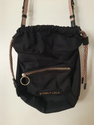 Bolso de la marca Bimba y Lola. - Color negro. - Cierre de cordón. - Bolsillo exterior con cremallera. - Correa ajustable.