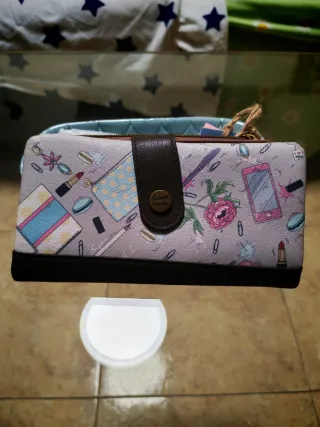 Cartera femenina con un diseño divertido y juvenil. Ideal para llevar tus esenciales. - Estampado con motivos de maquillaje y tecnología. - Cierre de botón a presión. - Detalle de cremallera. - Marca: Sweet Candy. #SweetCandy #CarteraMujer #MonederoVintage #EstiloAnekke #AccesoriosFemeninos #ModaRomantica #VintedSpain #RegaloMujer