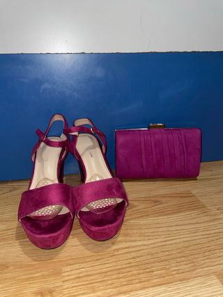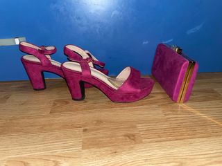 Los tacones: 9,5 de tacón. 41 de pie. El bolso: Lleva una cadena, para poder colgarlo de color dorada. El bolso es de material duro. Se vende juntos, por separado: El bolso: 30€ Los tacones: 40€