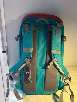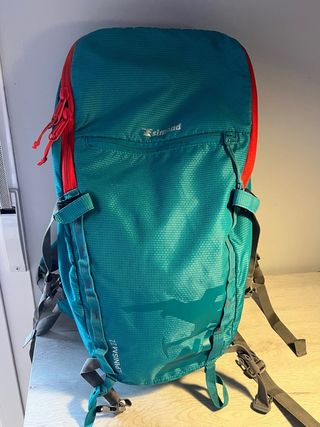 Mochila de la marca Simond, modelo Alpinism 22. - Color principal verde azulado con detalles en rojo. - Tejido texturizado. - Cierre de cremallera. - Tirantes ajustables.