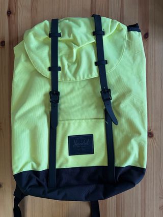 Mochila urbana marca Herschel color amarillo - Con departamento acolchado para portátil. - Bolsillo para móvil y accesorio cascos. - Cómoda, práctica y estilosa, con gran capacidad. - Combinación de colores negro y amarillo. - Cierre con correas y hebillas. - En perfecto estado, escaso uso.