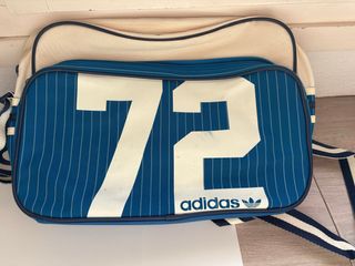 Bolso bandolera Adidas Originals de estilo retro, cómodo y práctico para el día a día. Diseño en azul con detalles en blanco y número frontal. Está usado, pero en buen estado general. Presenta signos normales de uso (ver fotos), sin roturas y con cremalleras funcionando correctamente. Características: • Marca: Adidas Originals • Tipo: Bandolera / bolso de hombro • Color: Azul y blanco • Correa ajustable • Compartimento principal con cremallera • Diseño retro clásico