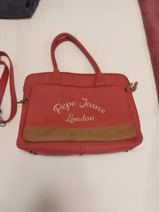 Bolso tipo cartera de la marca Pepe Jeans en color rojo- granate. Con muchos departamentos en el interior.Se encuentra en perfecto estado. Cabe ordenador. - Diseño elegante. - Asa de mano. - Correa ajustable para llevar al hombro.
