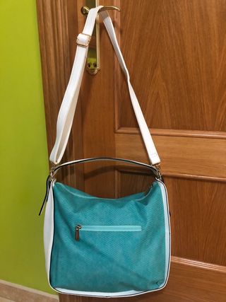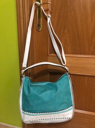 Bolso de hombro en color blanco y turquesa con correa, ideal para el verano