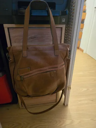 Bolso de piel con las iniciales PG grabadas. - Material: Piel. - Color: camel - Diseño con asas superiores. - Cierre de cremallera. - Medidas (aprox): 35x16x20 - tiene una preciosa piel, aunque al haberse usado bastante tiene algunas evidentes marcas de desgaste que se aprecian en las tres últimas fotos. Las asas en la parte interior tienen un pequeño corte. Si te fijas se ve en la foto.