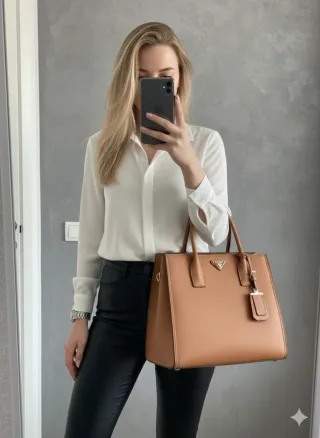 Elegante bolso estilo tote en un bonito color marrón. Un accesorio versátil y sofisticado. - Diseño tote. - Asa de mano. - Incluye charm colgante.