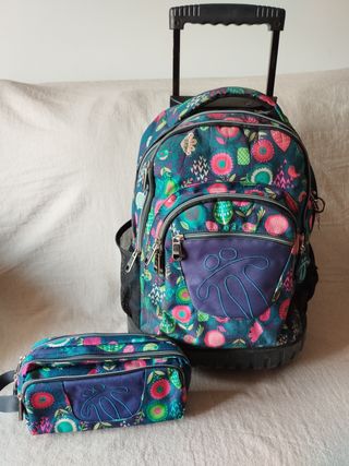 mochila con carro y neceser con tres compartimentos a juego maec totto . Muy bonita
