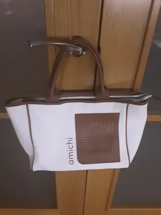 Bolso de mano y hombro Amichi blanco y marrón