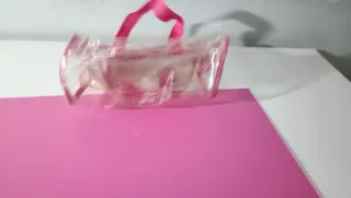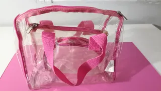 Neceser transparente con asas rosa