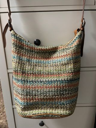 Bolso de la marca Bimba y Lola con un diseño tejido y rayas. - Tejido de hilo con múltiples colores. - Ribete y asas de piel. - Cierre superior. Amplio
