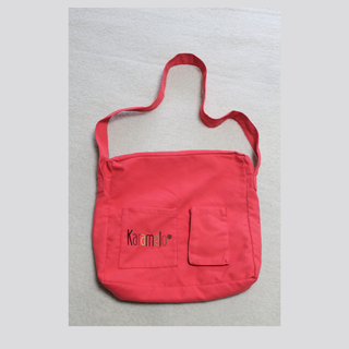 Bolso de tela de la marca Karamelo, ligero y muy cómodo Material: tela resistente Color: coral / rosa intenso Asa larga para llevar al hombro Dos bolsillos exteriores frontales Diseño práctico y juvenil Estado: en buen estado, con leves señales de uso normales (ver fotos).