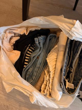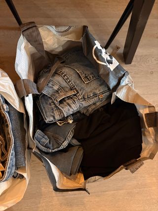 Bolsas de ropa con vaqueros y camisetas, tops