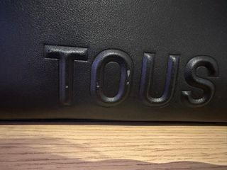 Bolso de la marca Tous con un diseño moderno y elegante. - Combinación de colores negro y marrón. - Logo de Tous en relieve en la parte frontal.