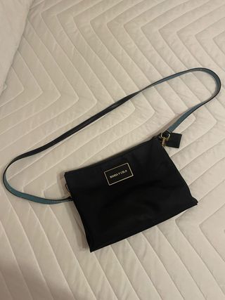 Bolso de la marca BIMBA Y LOLA. - Color negro con detalles en azul. - Correa ajustable.