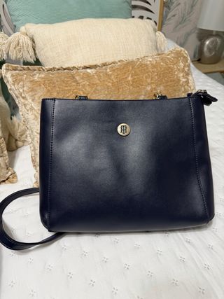 Elegante bolso de la marca Tommy Hilfiger. - Color azul marino. - Detalles en dorado. - Logo de la marca en la parte frontal.