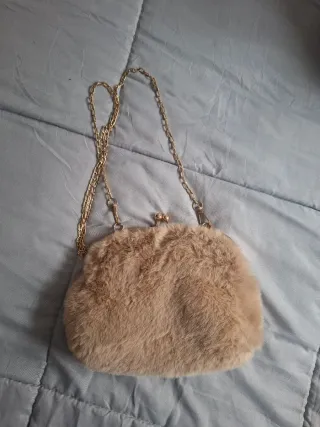 Bolso de pelo beige con cadena dorada