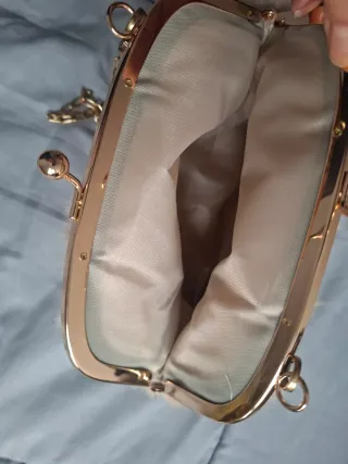 Bolso mano blanco y dorado