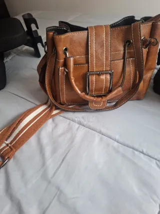 Bolso de mano con un diseño moderno y elegante. - Material: Piel sintética. - Color: Marrón. - Cierre con hebilla. - Correa ajustable.se puede llevar de tres formas largo medio o corto ,tiene para agarrar tres largura diferentes, bolsillo exterior delantero