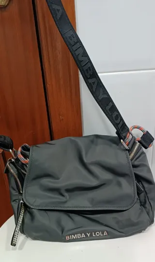 Bolso de piel en color negro original de la marca Bimba y Lola. - Asa ajustable. - Cierre de cremallera. - Bolsillo interior - bolsa de tela para guardarlo