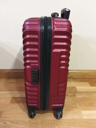 Maleta de cabina con un diseño moderno y resistente. Usada sólo una vez. - Ruedas giratorias para facilitar el transporte. - Candado de combinación integrado. - Asa extensible.